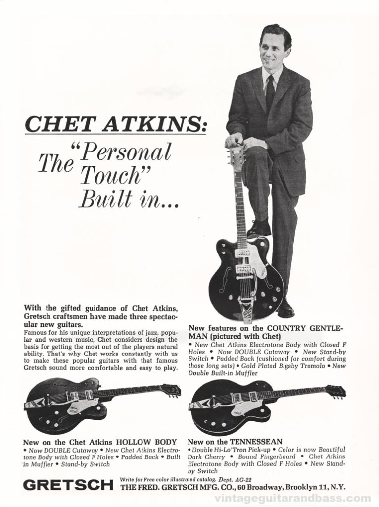 In 1956, Chet Atkins was frustrated with the hum issues he encountered in the studio from his electric guitar. As a prominent Gretsch endorser, similar to Les Paul for Gibson, Atkins needed a solution. Ray Butts created one with Gretsch’s Filter’Tron pickups. These pickups are narrower than the average humbucker, with coils and pole pieces placed closer together, reducing the magnetic field width and focusing the sound.