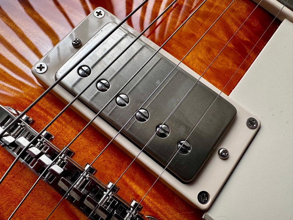 For jazz, it performs incredibly good if you dial down the volume a bit. The middle position, with both pickups engaged, delivers a tone that I really enjoy—it has a bit more air, with added bass from the neck pickup and the expected treble from the bridge pickup. The sound genuinely surprised me with its rich, punchy character, making the playing experience highly satisfying. The guitar’s response feels very organic, and it’s easy to control through the volume and tone knobs.