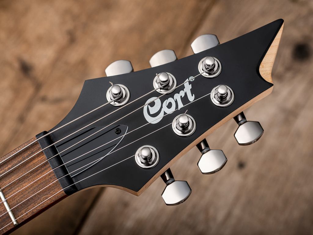 The neck of the Cort X300 is a standout feature, combining thoughtful design, excellent craftsmanship and superb playability. Its sleek headstock conveys speed and modernity, complete with a refreshed Cort logo that looks far more contemporary than its predecessor. On the back, a stamp confirms the guitar’s Indonesian origin—a region where Cort’s facilities are known for producing consistently high-quality instruments for numerous brands.