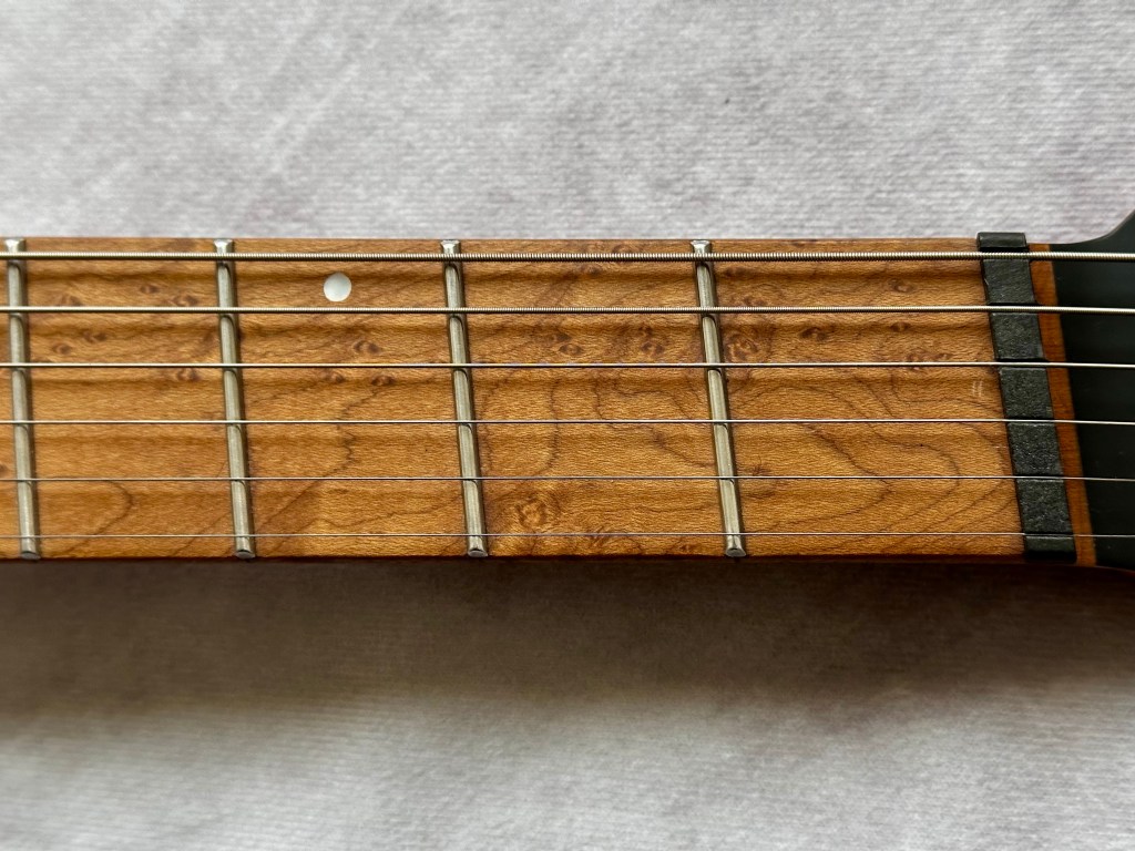 - Inlay Visibility Issues – The dark dot inlays on a dark birdseye maple fretboard can be hard to see, especially in dim lighting.