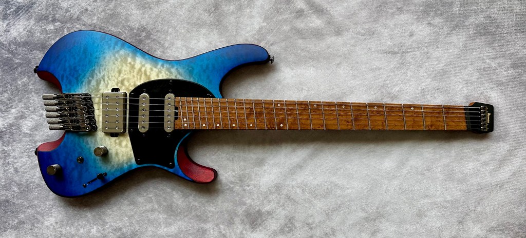 - Aesthetically Polarizing – The pickguard shape, dark inlays, and headless design might not appeal to everyone.