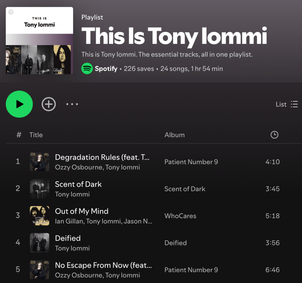 - “Iron Man” – Known for its memorable riff, this song is a cornerstone of heavy metal and showcases Iommi’s powerful, distortion-heavy guitar style.