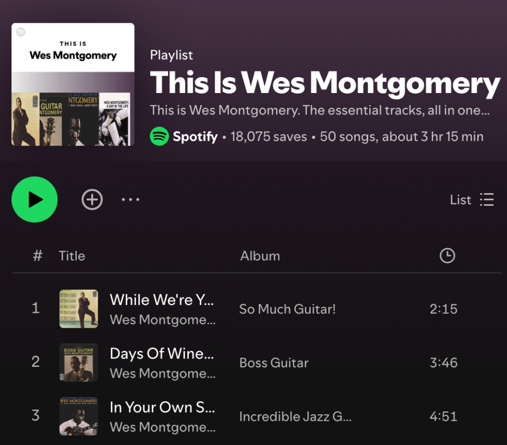 Another landmark album, “Smokin’ at the Half Note” (1965), recorded live at the famous Half Note Club in New York, is often cited as one of the greatest live jazz guitar albums ever recorded. Backed by the legendary Wynton Kelly Trio, Montgomery delivered electrifying performances that demonstrated his ability to seamlessly blend fiery improvisation with tight ensemble playing. The track “No Blues”, in particular, is a prime example of his impeccable sense of swing, phrasing, and melodic development, while “If You Could See Me Now” reveals his expressive, lyrical approach to ballads.