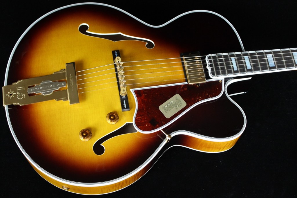 Montgomery is most famously associated with the Gibson L-5 CES, a high-end hollow-body archtop guitar known for its rich resonance and deep warmth. The L-5 had been a favorite among jazz guitarists since its introduction in the 1920s, but in Montgomery’s hands, it became an icon of jazz guitar history. He often played models from the 1950s and early 1960s, typically equipped with humbucker pickups, which contributed to his smooth and rounded tone.