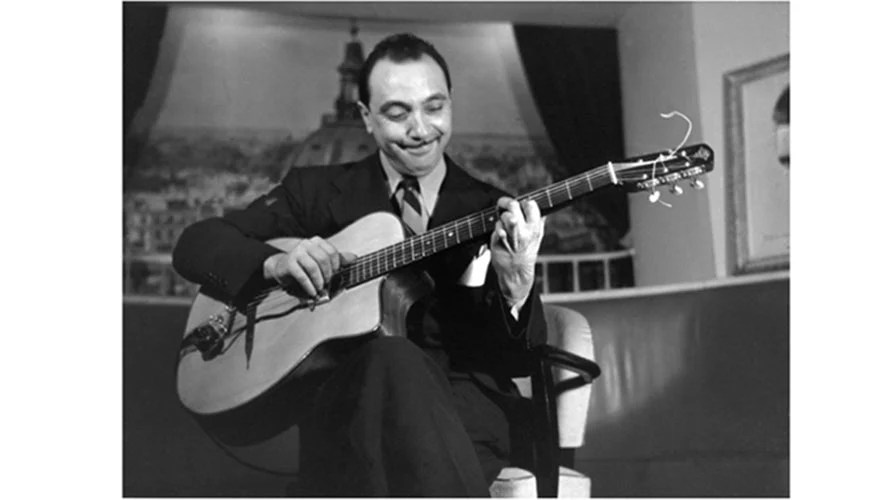 Django’s style fused American jazz with the melodies and rhythms of his Romani heritage. He called it “le jazz manouche,” now known internationally as Gypsy Jazz—a genre characterized by fast tempos, minor keys, intricate picking, and expressive vibrato.