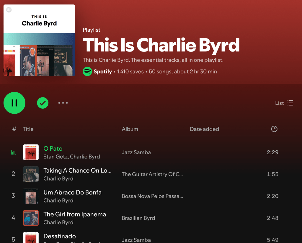 Charlie Byrd’s career took off in the 1960s when he released the groundbreaking album Jazz Samba (1962) in collaboration with Stan Getz. This album played a crucial role in introducing bossa nova to a wider audience in the United States. Tracks like “Desafinado” and “The Girl from Ipanema” became instant classics, showcasing Byrd’s ability to seamlessly blend jazz improvisation with Brazilian rhythms.