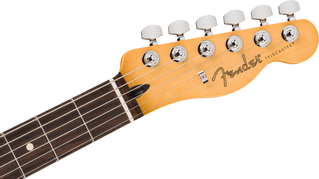 At first glance, the Player II Telecaster Modified looks every bit like a classic Tele. Yet beneath that familiar headstock lies a host of thoughtful modern upgrades. The locking tuners are one of the most practical additions, speeding up string changes while dramatically improving tuning stability. A Graph Tech TUSQ nut and modern low-friction string tree further reduce resistance at the headstock, ensuring that the strings glide smoothly and stay perfectly in tune. Combined with a six-saddle bridge featuring block brass saddles, this setup delivers precise intonation and a balanced, resonant feel.